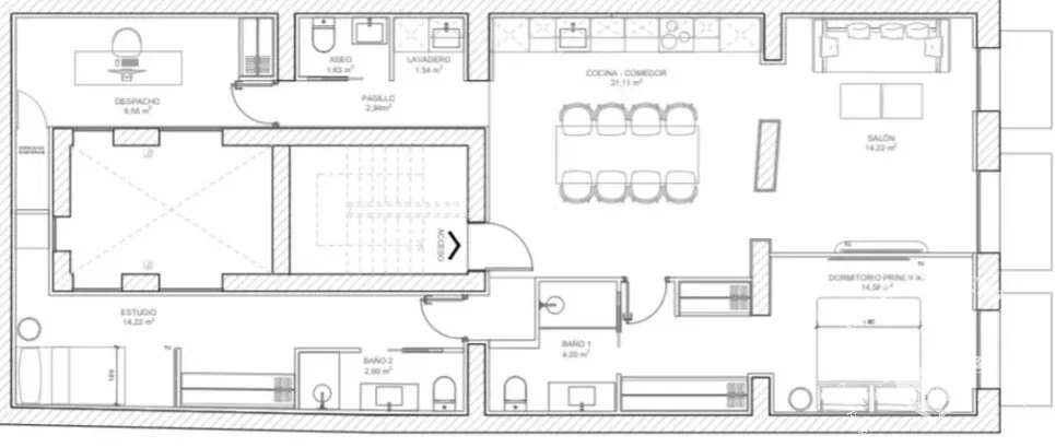 AL salir de esta área, nos encontramos con la zona de cocina - comedor.