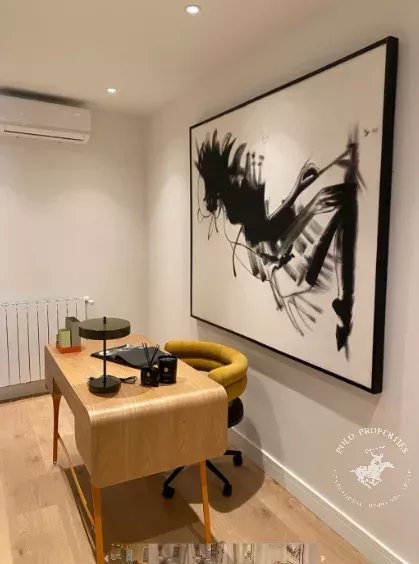 Al entrar nos encontramos del lado izquierdo, una zona de lavandería discreta y funcional y a continuación, un despacho cómodo y privado perfecto para trabajar.
